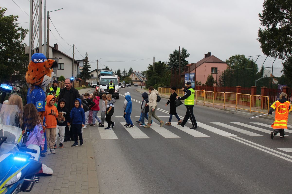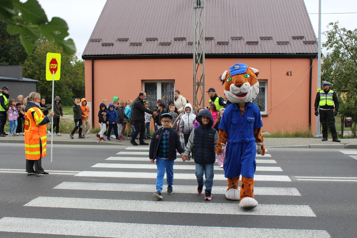 Dzieci poznawały znaki drogowe, zasady poruszania się po drodze, w tym przez przejścia dla pieszych. Najmłodsi pod okiem policjantów i nauczycieli sprawdzali swoje umiejętności także w praktyce. Wspólnie z maskotką „Ryś”, ćwiczyli bezpieczne przechodzenie przez przejście dla pieszych.