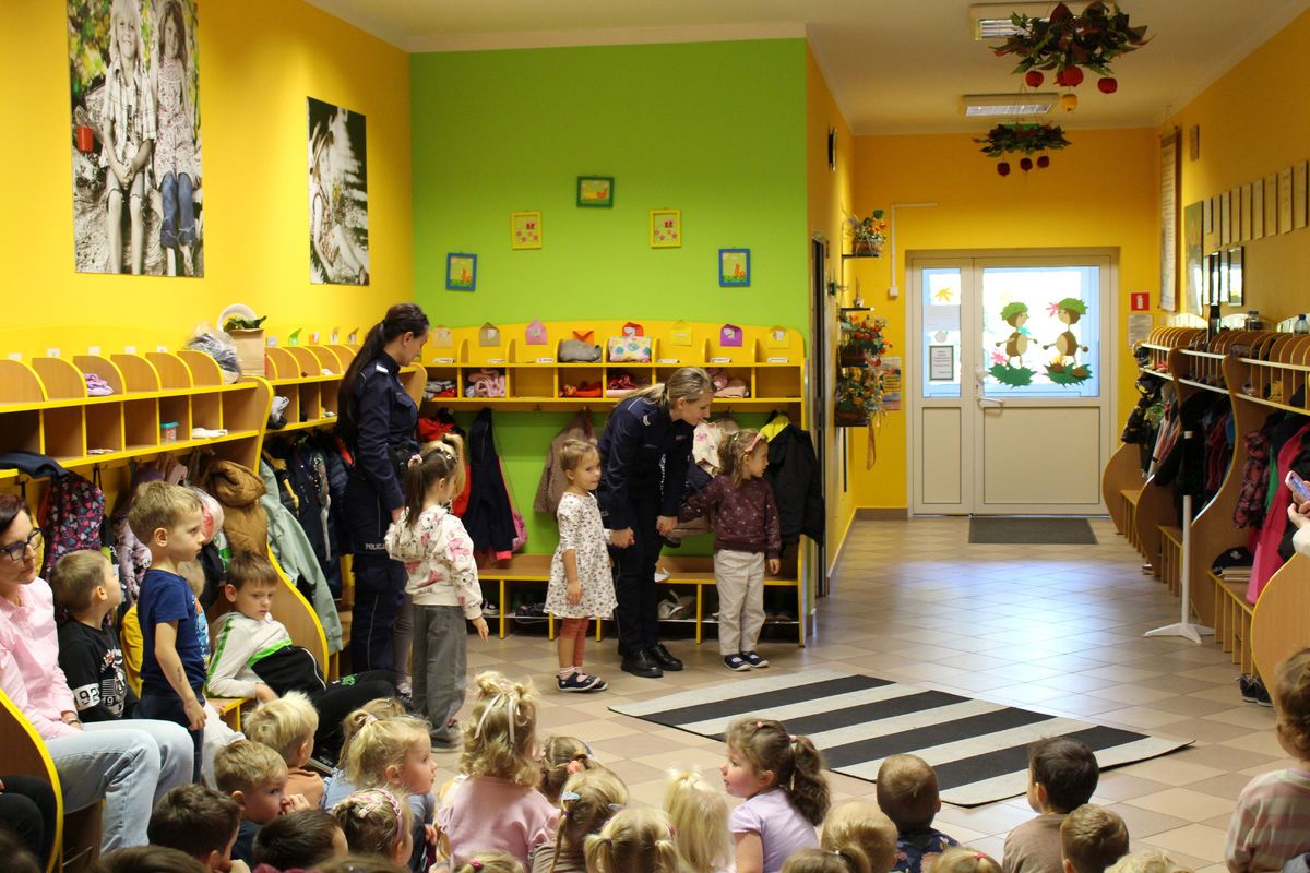 Policjantki zachęcały przedszkolaków do noszenia elementów odblaskowych i przypominały do czego służy numer alarmowy 112.