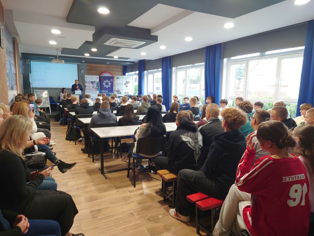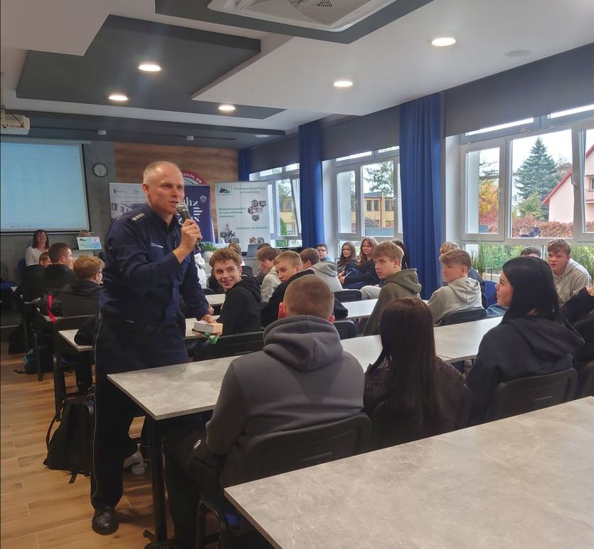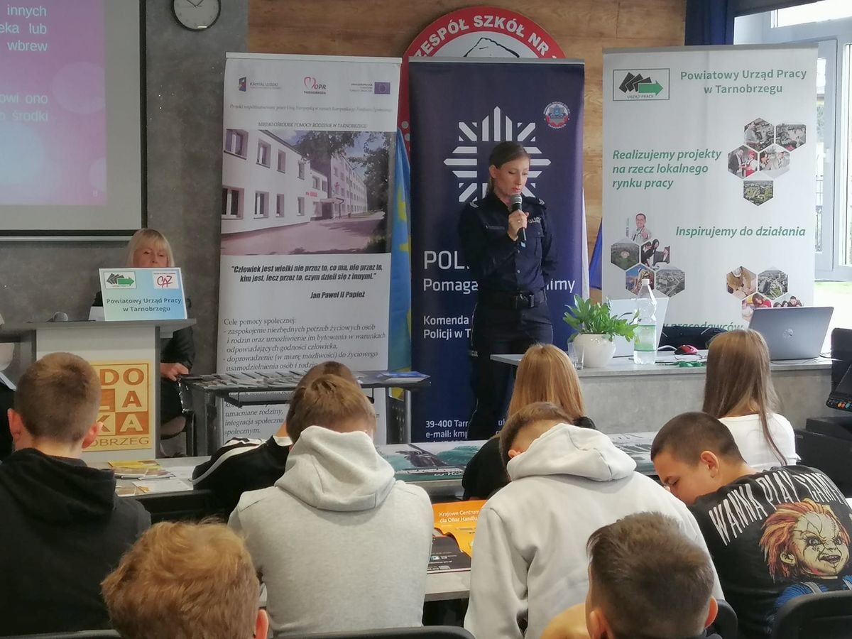 Tarnobrzescy policjanci we współpracy z przedstawicielami Powiatowego Urzędu Pracy w Tarnobrzegu oraz Ośrodka Pomocy Rodzinie w Tarnobrzegu, uczestniczyli w spotkaniu z uczniami klas pierwszych z Zespołu Szkół nr 3 im. gen. W. Sikorskiego w Tarnobrzegu w ramach obchodzonego Europejskiego Dnia Walki z Handlem Ludźmi.