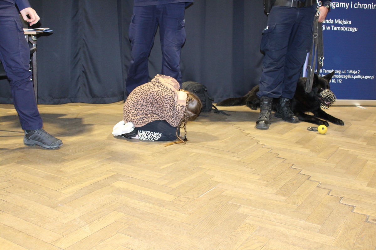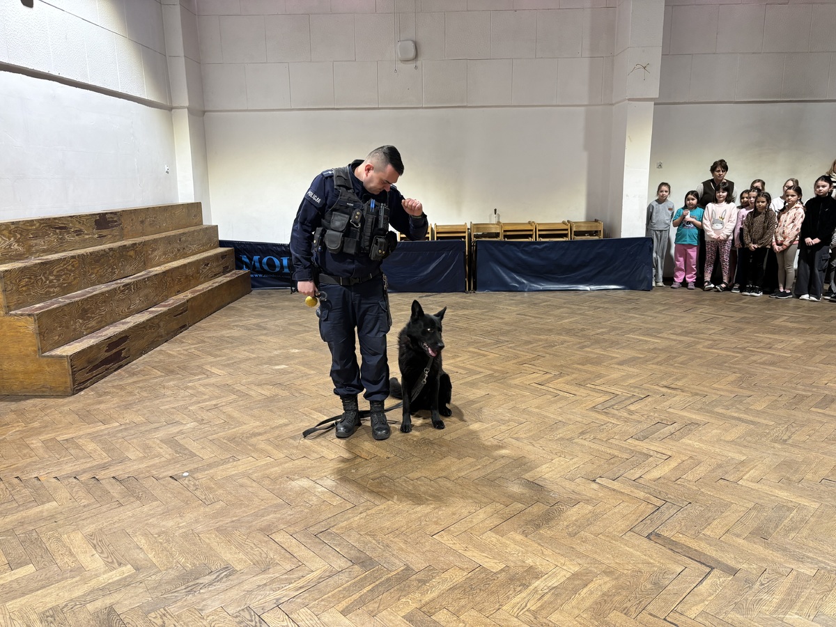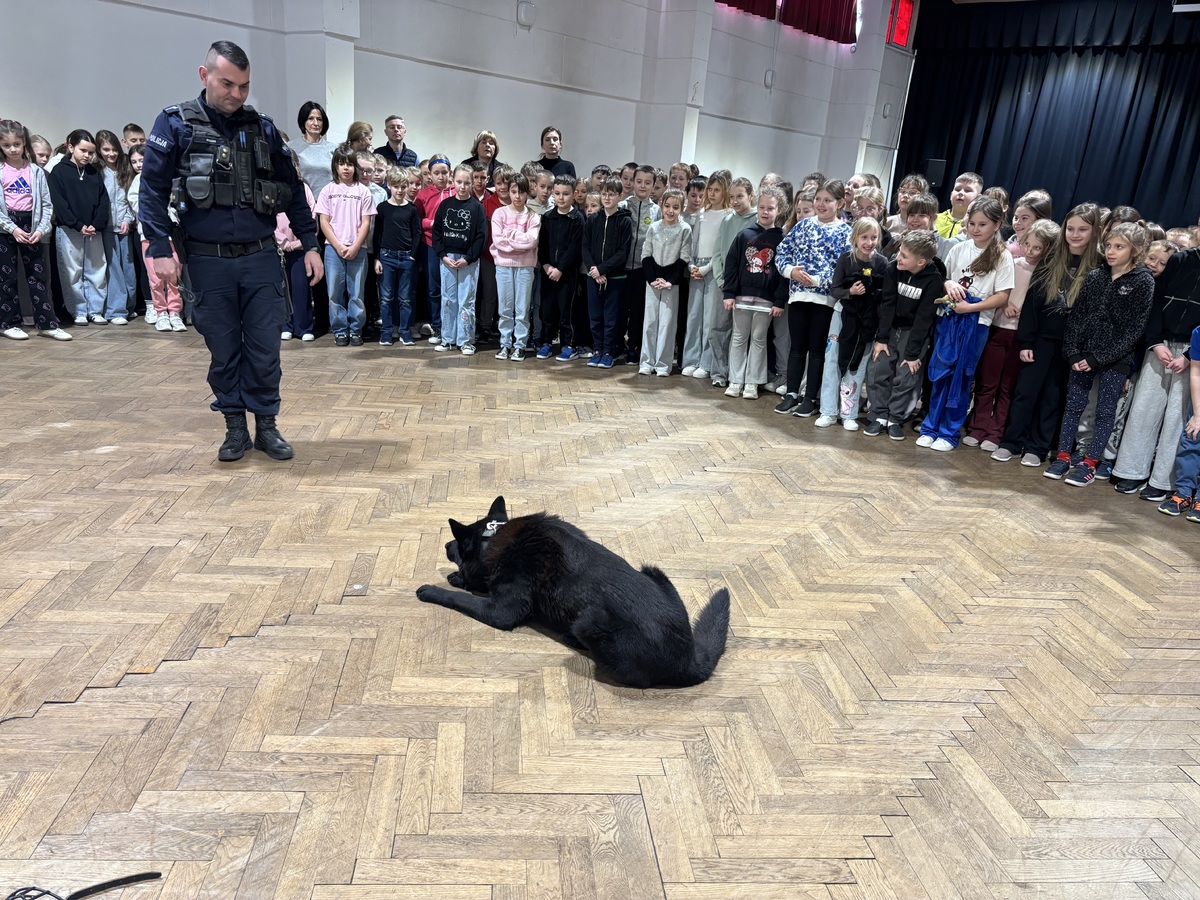 W czasie spotkania największe zainteresowanie wzbudził przewodnik psa służbowego wraz ze swoim czworonożnym partnerem. Przewodnik opowiedział dzieciom, jakie zadania wykonuje oraz jak ważna jest współpraca i zaufanie pomiędzy funkcjonariuszem, a jego czworonożnym partnerem. Podczas spotkania omówiono również zasady bezpiecznego zachowania się wobec obcych psów, jaką postawę przyjąć, aby uniknąć niebezpieczeństwa. Nie zabrakło także krótkiego pokazu czworonoga, który z dużym zaangażowaniem zaprezentował elementy swojego wyszkolenia, wzbudzając entuzjazm wśród najmłodszych uczestników spotkania.