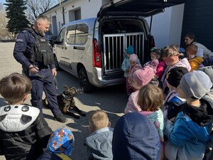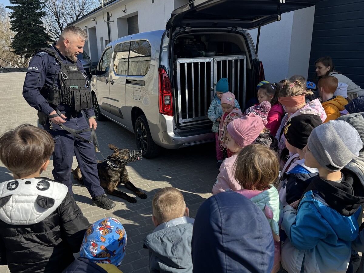Jedną z największych atrakcji spotkania było spotkanie z psem służbowym, który przywitał się z przedszkolakami i wzbudził ogromną sympatię wśród najmłodszych. Policjant opowiedział o szkoleniu psów policyjnych oraz o zadaniach, jakie wykonują podczas służby.
