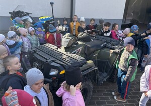 Następnie mali goście zwiedzili budynek komendy. Policjanci opowiedzieli o swojej pracy oraz pokazali pomieszczenia, w których na co dzień pełnią służbę. Dużym zainteresowaniem cieszyła się prezentacja policyjnych pojazdów. Dzieci mogły z bliska obejrzeć radiowozy oraz dowiedzieć się, do czego wykorzystywany jest specjalistyczny sprzęt znajdujący się na ich wyposażeniu.